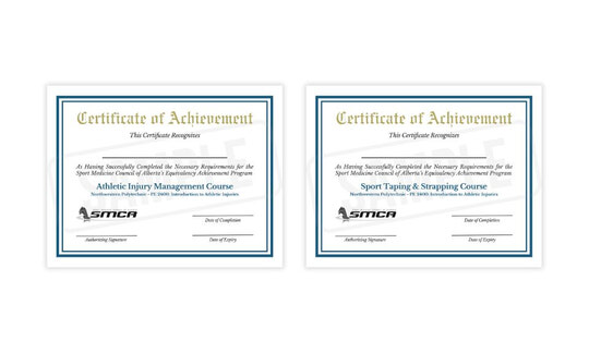 Northwestern Polytechnic PE 2400 Student OptionsPE 2400 - Introduction to Sports Injuries: The course provides an introduction to practical and theoretical concepts of sports injury. This includes an overview of athletic therapy and the prevention, assessment, acute management, and rehabilitation of injuries. Students enrolled in physical education or kinesiology programs at post-secondary institutions can earn a Certificate of Achievement in Athletic Injury Management and Sport Taping & Strapping by completing recognized courses. The Northwestern Polytechnic PE 2400 Course is currently recognized by the SMCA and is eligible to receive certificates of achievement. |